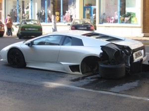 Cred ca e un model Lamborghini Murcielago. Asta inseamna vreo 300-400.000 de euro. La cum arata, cred ca o sa „ceara” vreo 50.000 reparatia.