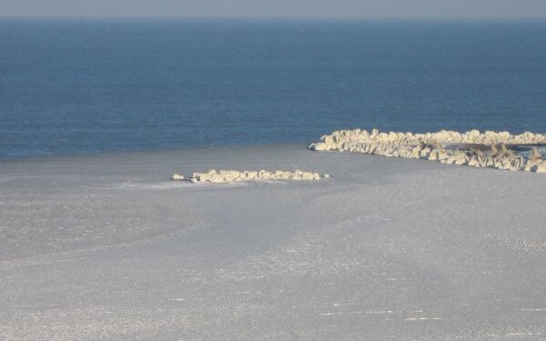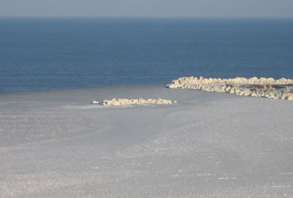 Gerul naprasnic si lipsa vantului au aranjat o mare linistita, care „a reusit” sa inghete pana la diguri.