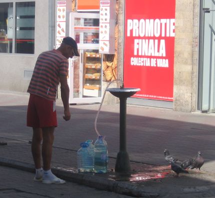Secundo. Poate v-ati intrebat la ce folosesc tasnitorile din centrul orasului Constanta, de pe Stefan cel Mare, din moment ce le lipseste tamburusul ala care face ca jetul de apa sa poata fi interceptat cu buzele. Trec peste faptul ca nu multora dintre noi le-ar fi dat prin cap sa apeleze la serviciile bietelor gheizere mecanice, dupa ce am vazut diversi jegosei sau oameni ai strazii spalandu-se cocotati/cracanati pe ele. Totusi? Ei bine, tasnitorile nu sunt vandalizate, sunt doar aranjate incat sa foloseasca perfect scopului, anume umplerea bidoanelor de 5 litri, ai caror proprietari sunt cei care locuiesc in cladirile dimprejur si care presupun ca au apa taiata de RAJA.  In felul asta au eludat vanzatoarea tampita si ne transmit noua plata facturilor, ca doar nu cred ca apa de la reteaua de tasnitori e act de caritate. Traiasca tasnitorile fara tamburus, prietenele comunitatii rome din piata Grivitei!
