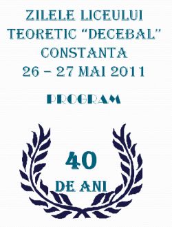 Evenimentul va fi marcat in zilele de 26 si 27 mai printr-o serie de activitati care se vor desfasura sub egida Zilelor Liceului. Astfel, pe data de 26 mai, incepand cu ora 11, va avea loc la sediul liceului intalnirea generatiilor de profesori si elevi care fac parte din marea familie a decebalistilor. La festivitati au fost invitati reprezentanti din partea Ministerului Educatiei, Cercetarii, Tineretului si Sportului, a Inspectoratului scolar Judetean Constanta, a Arhiepiscopiei Tomisului si a autoritatilor locale.