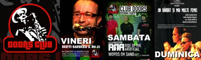 Localul isi mentine promisiunea de a oferi in continuare vizitatorilor „o distracţie mai altfel” decât restul cluburilor din Constanta, iar weekendul redeschiderii  sustine  aceasta idee. Astfel, pentru prima searã in casa noua, Doors invita constantenii la un super concert rock’n roll Berti Barbera si trupa No. 13.