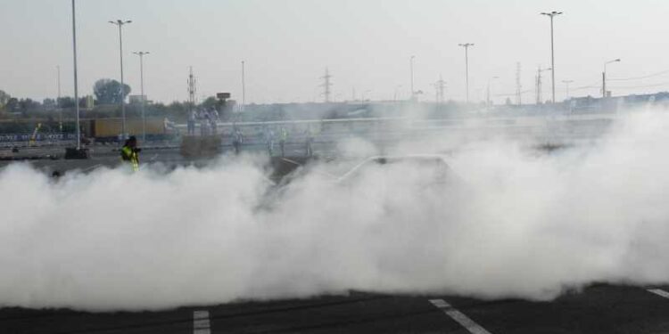 Campionatul de Drift de la Maritimo. O experienta interesanta, a sfarsitul careia am constatat ca eram plini de firimituri de cauciuc toti cei care ne-am protapit in primul rand, ca sa vedem bolizii de la cativa metri.