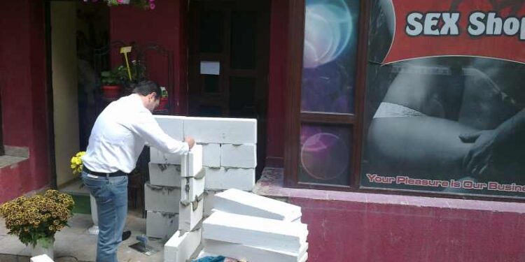 Claudiu Palaz, candidatul UNPR pentru Primaria Constanta, a zidit simbolic intrarea in magazinul cunoscut a continua sa comercializeze etnobotanice, pe bulevardul Tomis, vizavi de Spiitalul Judetean. Palaz l-a acuzat pe primarul in exercitiu, Radu Mazare, ca nu face nimic sa inchida si ultimul magazin care vinde substante nocive tinerilor.