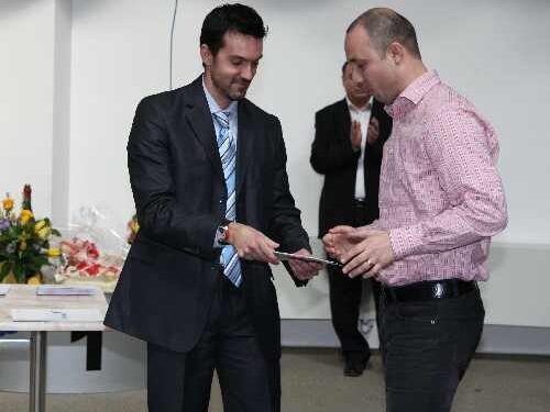 Ionut Coman, jurnalist la Telegraf si corespondent al Gazetei Sporturilor la Constanta, a primit din partea Directiei Judetene pentru Sport si Tineret Constanta Diploma de Excelenta pentru Voluntarul Anului in Sport. Maestrul de ceremonie a fost Mihai Orzan, dupa cum bine se vede in fotografie.