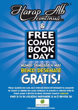 free comic bookSambata, 4 mai, revista „Harap Alb continua” va fi oferita gratuit cu ocazia Free Comic Book Day in 6 orase din tara prin reteaua de librarii Carturesti, mai exact Bucuresti, Cluj, Timisoara, Brasov, Iasi si Constanta.