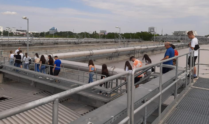 Oaspeții au aflat că povestea apei preluate din sistemul de canalizare în stația de epurare începe cu zona grătarelor rare, locație unde se face o filtrare grosieră a apei reziduale. A urmat camera SCADA, destinată monitorizării și controlului proceselor tehnologice, iar turul stației a continuat cu vizitarea bioreactoarelor și a decantoarelor, locuri special amenajate și acoperite, în care apa este tratată pentru a fi curățată de toate impuritățile și apoi verificată, astfel încât la finalul procesului de epurare să fie redată circuitului natural, în perfectă stare, în Marea Neagră.