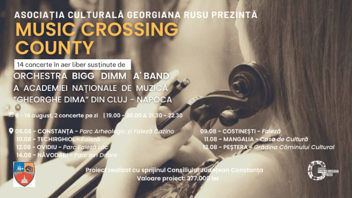 Un proiect cultural care se adresează constănțenilor din șapte localități, dar și turiștilor, debutează pe 8 august 2022, „Music Crossing County”, organizat de Asociația Culturală Georgiana Rusu și realizat cu sprijinul Consiliului Județean Constanța. Buget total: 377.000 lei, din care 320.000 lei finanțare C.J.C., 57.000 lei contribuție proprie a beneficiarului.