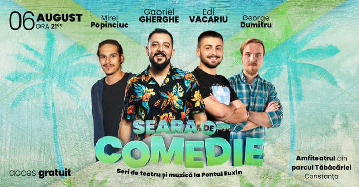 Toți cei care nu și-au pierdut simțul umorului sunt așteptați la un show de Stand-Up Comedy, în cadrul proiectului “Seri de Teatru și Muzică la Pontul Euxin”, ediția a IV-a, ce se desfășoară în Amfiteatrul din parcul Tăbăcărie.