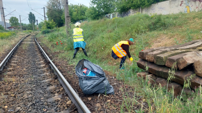 Angajații Regionalei CF Constanța au salubrizat calea ferată din zona cartierului KM 5