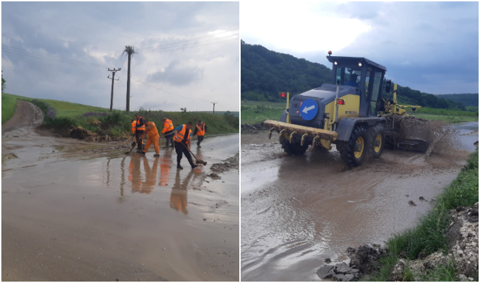 15 angajați ai Societății „Drumuri Județene Constanța” S.A. cu 14 utilaje (autoutilitare, autogredere, vole, buldoexcavatoare, etc.) au muncit ore în șir pentru a îndepărta efectele nedorite ale ploii