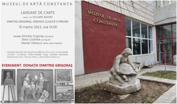 Vineri, 10 martie 2023, începând cu ora 14.00, la Muzeul de Artă Constanța, va avea loc un triplu eveniment cultural: vernisajul lucrărilor de artă care au fost donate instituției constănțene de pictorul Dimitrie Grigoraș, lansarea albumului monografic „Dimitrie Grigoraş. Ordinea clasică a privirii”, autor Eduard Andrei și momentul coregrafic „Mișcare și culoare”, semnat de coregrafa Stela Cocârlea.