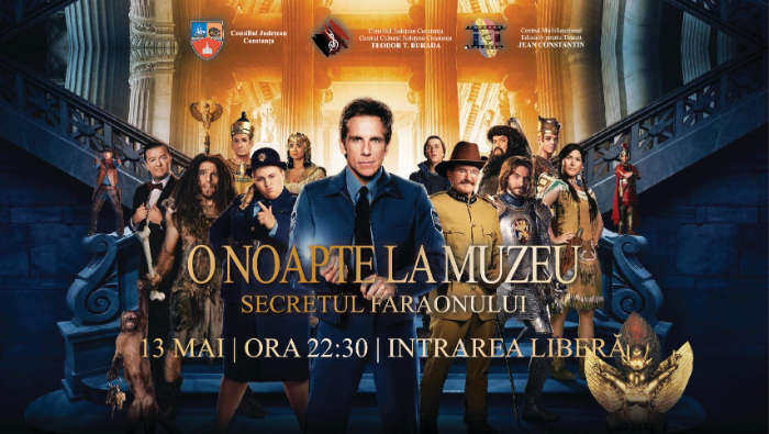 iubitorii acestor manifestări culturale în… nocturnă sunt așteptați pe 13 mai, la ora 22.30, la Centrul Multifuncțional Educativ pentru Tineret “Jean Constantin”, unde va rula filmul ,,Night at the Museum: Secret of the Tomb” (2014) - O noapte la Muzeu: Secretul Faraonului”, iar INTRAREA ESTE LIBERĂ