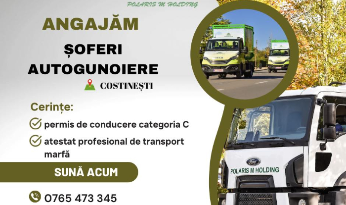 Polaris M Holding Costinești angajează șoferi pentru autogunoiere.