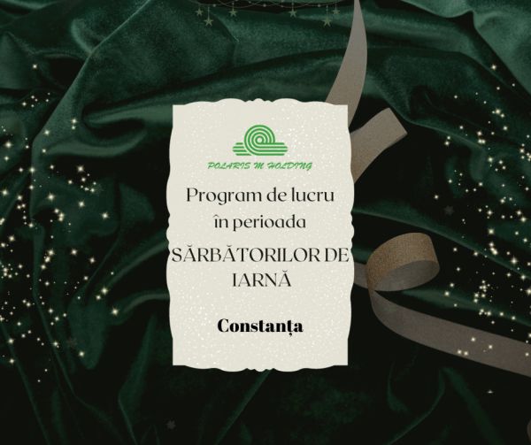 Compania Polaris M Holding informează clienții și colaboratorii săi asupra programului de lucru desfășurat în perioada Sărbătorilor de Iarnă, în municipiul Constanța.