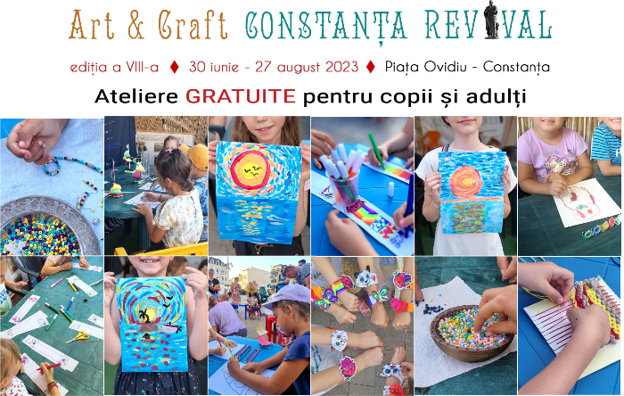 ArtAntik Gallery, organizatorul Târgului de Artă și Antichități „Art & Craft Constanța Revival” activitățile și programul atelierelor gratuite ce se vor desfășura în această săptămână, 24-30 iulie 2023, în Piața Ovidiu.