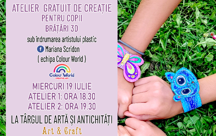 Ateliere gratuite de creație pentru copii: Brățări 3D sub îndrumarea artistului plastic Mariana Scridon din echipa Color World – Constanța