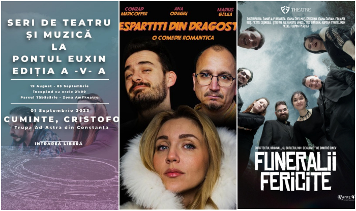 Ultimul weekend al spectaculosului eveniment cultural „Seri de Teatru și Muzică la Pontul Euxin” ediția a V-a, 01 – 03 septembrie, a programat 3 piese de excepție, pe scena Amfiteatrului din Parcul Tăbăcărie.