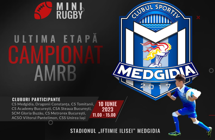 Medgidia va găzdui sâmbătă, 10 iunie 2023, începând cu ora 11.00, ultima etapă din campionatul Asociației Municipale de Rugby București. Competiția se va desfășura pe stadionul “Iftimie Ilisei” și este destinată categoriilor de vârstă Under8, Under10, Under12 și Under14.
