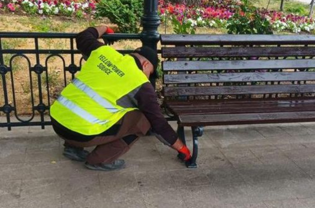 Pe măsură ce băncile sunt reparate, acestea sunt aduse și repuse în pavilioane și pe faleză.