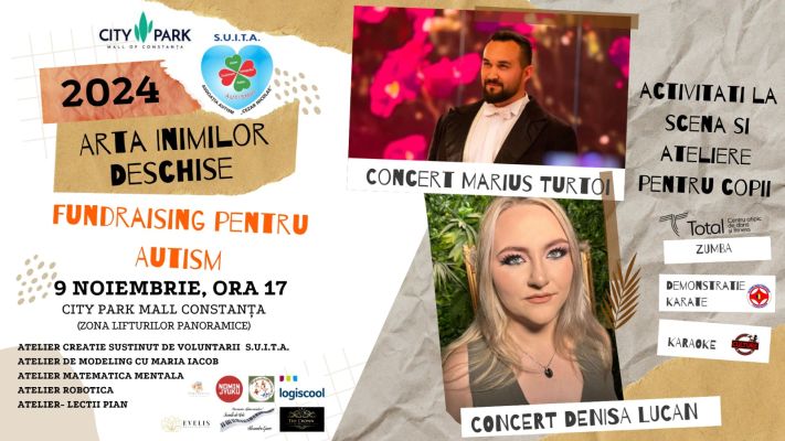 “Pe 9 noiembrie, vom organiza un nou eveniment de conștientizare, dar și strângere de fonduri. Cei ce vor veni la cumpărături în City Park Mall, se pot opri cu cei mici la atelierele noastre sau pot participa la evenimentele ce se desfășoară pe scenă. Toate aceste evenimente sunt gratuite pentru constănțeni, care însă pot dona și ajuta în acest fel copiii ce suferă de autism. Pot completa și formularul 230. Persoanele fizice au posibilitatea de a contribui prin redirecționarea a 3,5% din impozitul anual pe venit către asociația noastră’, a declarat Eleonora Nicolae, președintă Asociația Autism Cezar Nicolae – S.U.I.T.A.