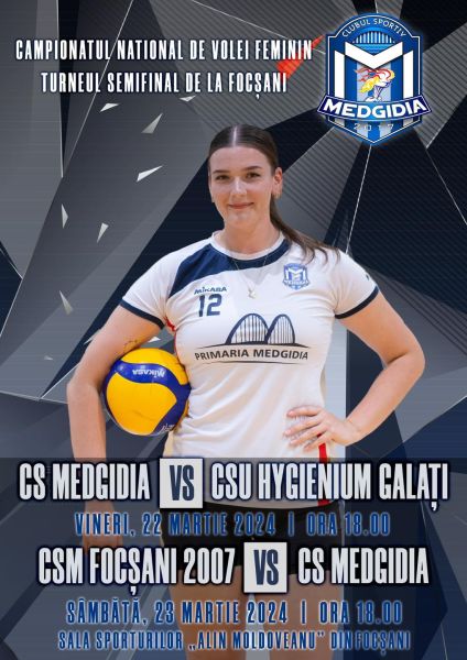 Voleibalistele Clubului Sportiv Medgidia joacă în acest weekend Turneul Semifinal din Campionatul Național, programat la Sala Sporturilor “Alin Moldoveanu” din Focșani.
