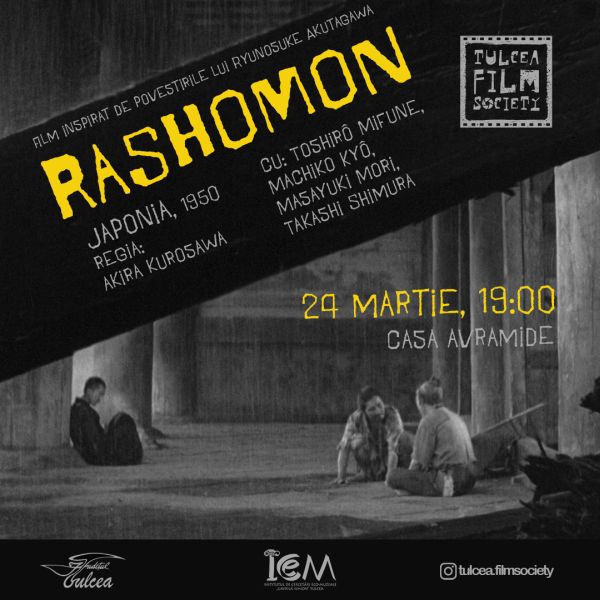 Sub poarta Rashomon, trei drumeți care se adăpostesc de ploaie examinează o întâmplare cât se poate de cumplită: moartea unui samurai. Patru personaje depun mărturie despre crima din pădurea cu sclipiri și umbre, dar misterul rămâne departe de a-și găsi rezolvarea. Filmul este subtitrat în limba română, iar intrarea este liberă.