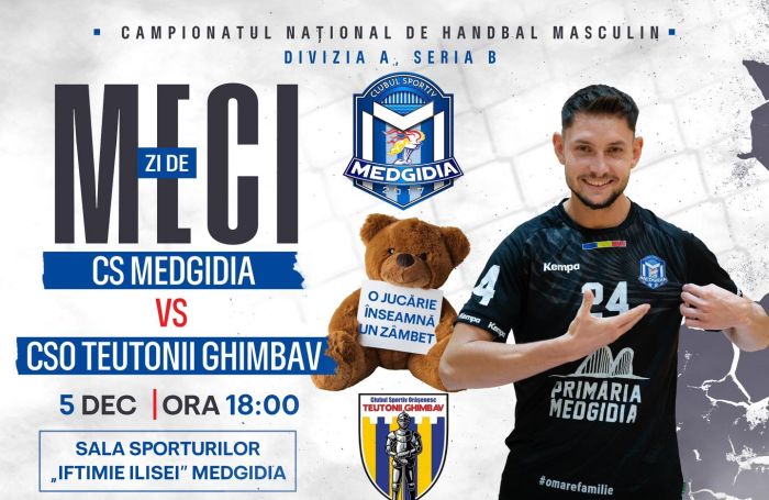 CS Medgidia: Vă așteptăm la Sala Sporturilor „Iftimie Ilisei”, să îi susținem pe băieți în etapa XI, din Divizia A, Seria B. La începutul meciului, spectatorii prezenți pot aduce câte o jucărie de pluș pentru copiii nevoiași, așa cum v-am obișnuit în fiecare an, de sărbători.