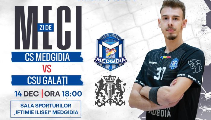 Sâmbătă, 14 decembrie 2024, CS Medgidia întâlnește CSU Galați, în etapa a XIV-a din Campionatul Național de Handbal Masculin, Divizia A, Seria B