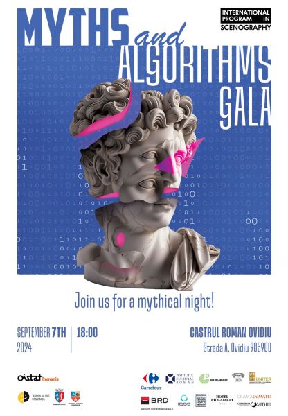 Gala Myths and Algorithms / Mituri și Algoritmi este un eveniment de vernisaj al lucrărilor create în cea de-a treia ediție a Programului Internațional în Scenografie, și va avea loc sâmbătă, 7 septembrie 2024, la Castrul Roman din orașul Ovidiu. Intrarea este liberă!