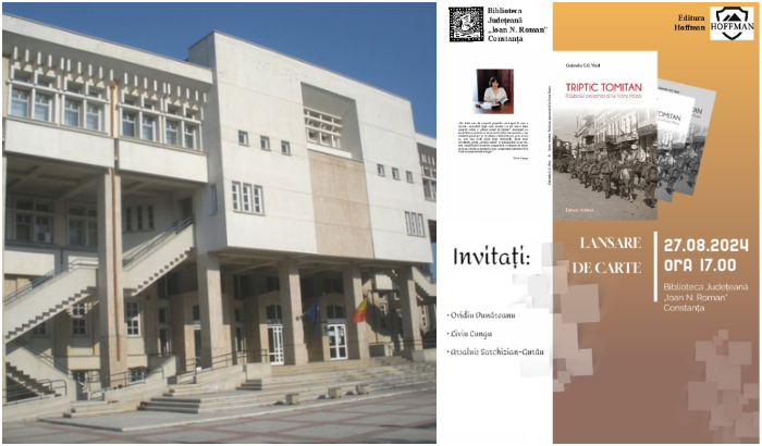 Biblioteca Județeană „I.N. Roman” Constanța organizează, marți, 27 august 2024, ora 17.00, în Sala de la Parter, lansarea volumului de proză scurtă „Triptic tomitan – Războiul personal al lui Franz Popa”, al scritoarei Gabriela G.G. Vlad, membru al Uniunii Scriitorilor din România, Filiala „Brașov” în dialog cu scriitorii: Ovidiu Dunăreanu, redactor șef al revistei „Ex Ponto”, președinte interimar al Filialei „Dobrogea” a Uniunii Scriitorilor din România, Liviu Lungu și Prof. Arșaluis Sarchizian-Gurău.