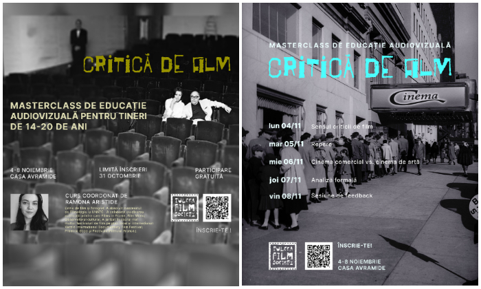 Liceenii din Tulcea sunt invitați să se înscrie la masterclass-ul Critică de film, susținut de Ramona Aristide, ce va avea loc în perioada 4 – 8 noiembrie 2024, la Casa Avramide.