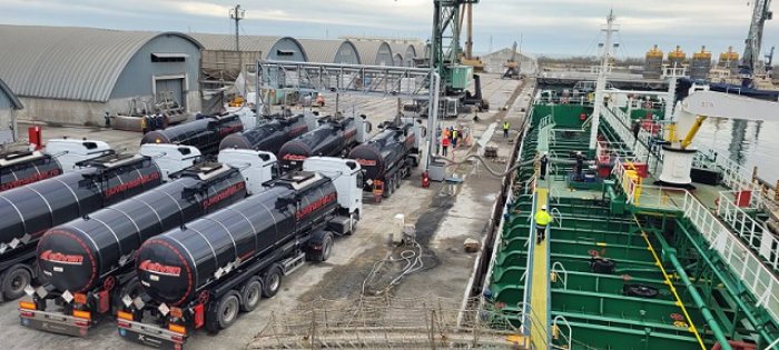 Operatorul portuar Midia Internațional S.A. a inaugurat o nouă facilitate de operare bitum rutier lichid în regim de transbord direct, între nava maritimă SKID și autocisterne, cu o rată de transfer impresionantă, de peste 2.000 de tone pe zi