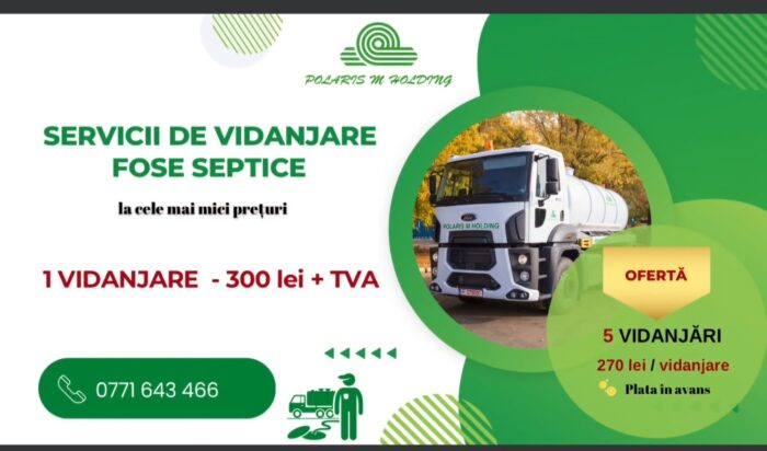 • 1 vidanjare = 300 lei + TVA