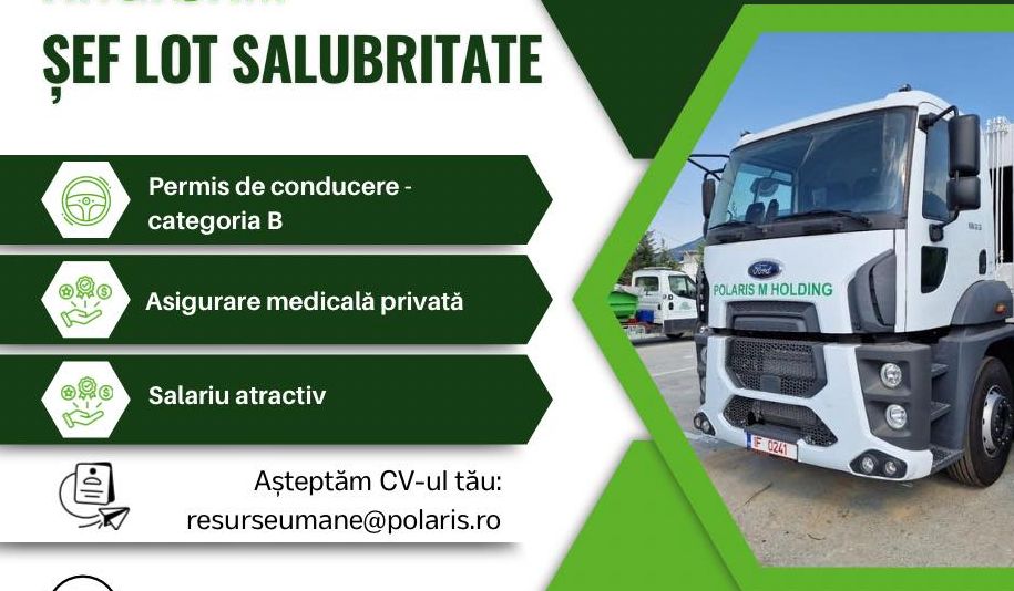Polaris M Holding angajează Șef Lot Salubritate – Constanța. Candidații trebuie să îndeplinească următoarele cerințe: