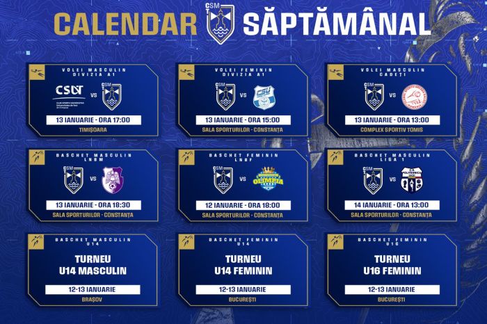 Sportivii de la CSM Constanța continuă competițiile în noul an, iar voleiul și baschetul “monopolizează” cel de-al doilea weekend din 2024, cu meciuri susținute de echipele din Liga Națională, Liga 1 și Campionatele Naționale de Juniori și Cadeți