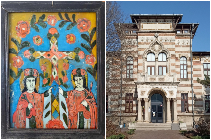 Foto: Icoană cu tema „Sfinții Împărați Constantin și Elena”, pictată la Gherla, în a doua jumătate a secolului al XIX-lea, aflată în patrimoniul Muzeului de Artă Populară Constanța.