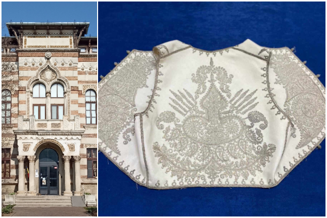 Obiectul de patrimoniu prezentat săptămâna aceasta este un ilic confecționat din stofă albă, cu răscroială amplă la mâneci și linie rotunjită la bază. Este decorat pe piept și spate cu broderii din fir metalic argintiu, realizate în tehnică orientală. Motivele decorative vegetale – între care și stilizări ale chiparosului – sunt dispuse în câmpuri compacte, urmărind liniile croiului.