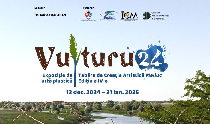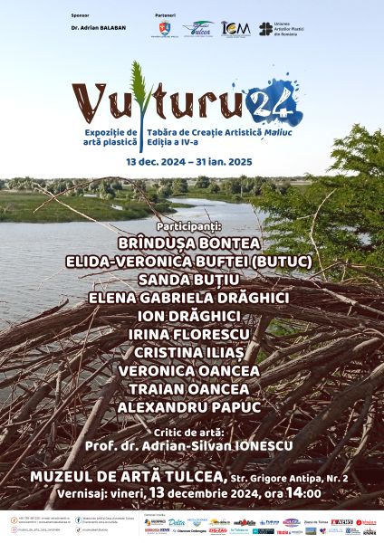 Complexul Muzeal de Patrimoniu Cultural Nord Dobrogean al Institutului de Cercetări Eco-Muzeale „Gavrilă Simion” Tulcea, Uniunea Artiștilor Plastici din România (Filiala București și Filiala Tulcea) și Dr. Adrian Balaban vă invită să vizitați, în perioada 13 decembrie 2024 – 31 ianuarie 2025, expoziția colectivă de artă plastică intitulată „Vulturu 24”.