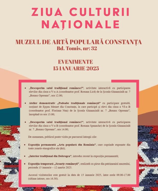 Muzeul de Artă Populară Constanța sărbătorește Ziua Culturii Naționale, în data de 15 ianuarie, prin manifestări la care participarea publicului este gratuită.