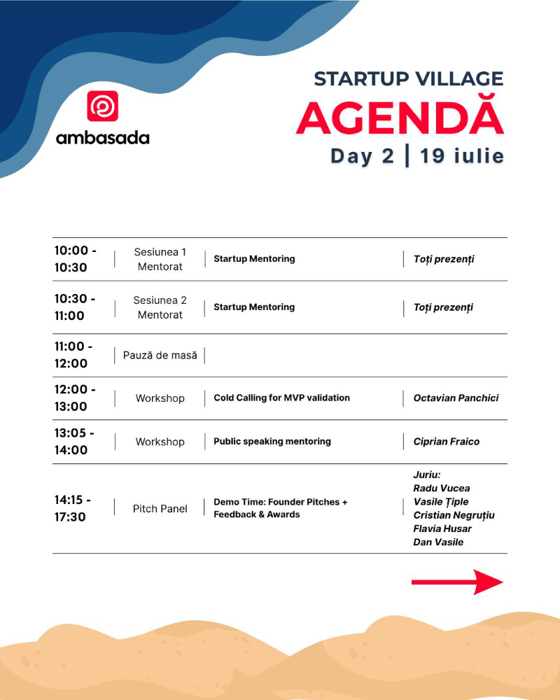 AMBASADA: Pitch convingător pentru un startup? VINO la STARTUP VILLAGE în CyberSea Festival!