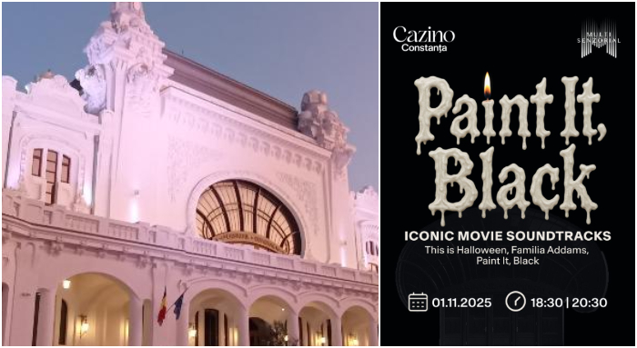 Piesele din filme iconice, interpretate live instrumental, prind viață în cadrul show-ului intitulat sugestiv Paint it, Black. Halloween edition, inspirat de celebra piesă a trupei The Rolling Stones interpretată recent și de personajul Wednesday din serialul omonim. Concertul Paint it, Black. Halloween edition va avea două reprezentații pe 1 noiembrie, de la ora 18:30, respectiv ora 20:30. Biletele sunt disponibile pe bilet.cazinoul.com. Evenimentele sunt organizate de Cazinoul din Constanța și fac parte din seria Iconic Movie Soundtracks dezvoltată de Multisenzorial.