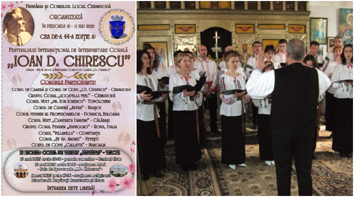 Primăria Cernavodă organizează în perioada 10 – 11 mai 2025, cea de-a XLIV- a ediție a ”Festivalului Internațional de Interpretare Corală Ioan D. Chirescu”, eveniment în care publicul va avea parte de două seri de spectacol de calitate, oferit de 11 ansambluri corale din ţară, dar și din străinătate: Bulgaria, Italia, Turcia