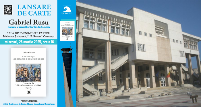 Biblioteca Județeană „Ioan N. Roman” Constanța, împreună cu Editura Ex Ponto și Filiala Dobrogea a Uniunii Scriitorilor din România organizează lansarea celei de a II-a ediții a cărții „Gramatica rememorării”, a scriitorului dobrogean Gabriel Rusu.