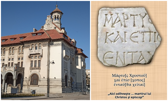 Specialiștii Muzeului de Istorie Națională și Arheologie din Constanța (MINAC) au achiziționat, în anul 1968, un fragment dintr-o placă de marmură, descoperit în cartierul Tomis Nord. Textul inscripției pomenește numele unui martir, care a fost și episcop. Placa pare să fi fost așezată la intrarea unui martyrium, construit la Tomis undeva la sfârșitul secolului al IV-lea p. Chr. și începutul secolului următor, pentru adăpostirea moaștelor, depuse inițial într-un mormânt mai modest.