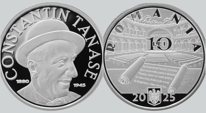 Banca Națională a României lansează în circuitul numismatic, începând de luni, 13 octombrie 2025, o monedă din argint cu tema 145 de ani de la nașterea lui Constantin Tănase.
