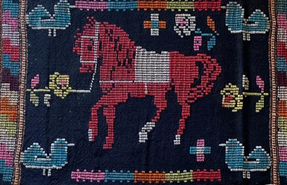 În imagine, detaliu de pe o pernă cu motiv zoomorf (calul), specifică etniei bulgare, achiziționată de Muzeul de Artă Populară Constanța, din județul Tulcea.