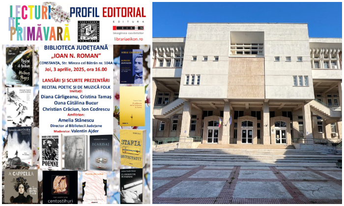 Biblioteca Județeană „Ioan N. Roman” Constanța găzduiește joi, 3 aprilie 2025, începând cu ora 16.00, evenimentul „Portret de editor”, ce îl are ca invitat pe Valentin Ajder, directorul Editurii Eikon.
