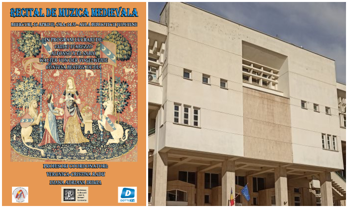 Miercuri, 16 aprilie, de la ora 14.30, Colegiul Național de Arte ”Regina Maria” vă invită în Aula Bibliotecii Județene ”I. N. Roman” Constanța, să vă lăsați purtați, cu ajutorul sonorităților muzicale, în vremuri demult apuse, din prima jumătate a mileniului trecut când trubadurii, truverii sau minnesängerii erau aceia care promovau arta muzicală în peregrinările lor.