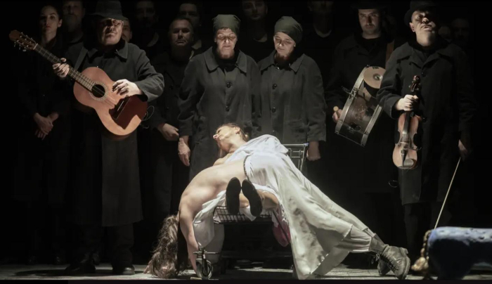 E semnul coborârii tragicului din palat la marginea lumii, al conservării tragicului departe de miezul dur al vieții sociale. E un ghetou al lumii de azi, care și-a inventat pentru sine mecanisme de funcționare ancestrale, recompuse de Măniuțiu cu o claritate de oglindă în care reverberează instrumentele și vocile grupului Iza.