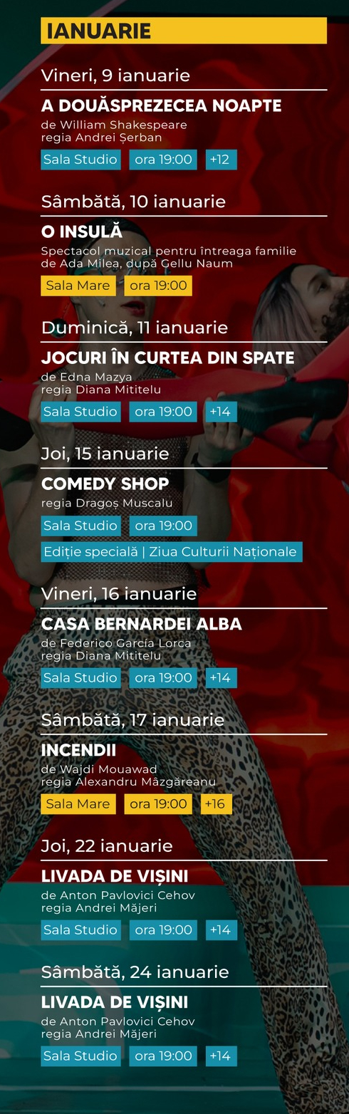 Teatrul de Stat Constanța a anunțat programul spectacolelor din lunile ianuarie și februarie 2026, reușind o performanță greu de egalat de orice altă instituție culturală similară din Dobrogea, cel puțin: să bifeze, într-un timp incredibil de scurt, mai multe sold-out-uri din lista anunțată.